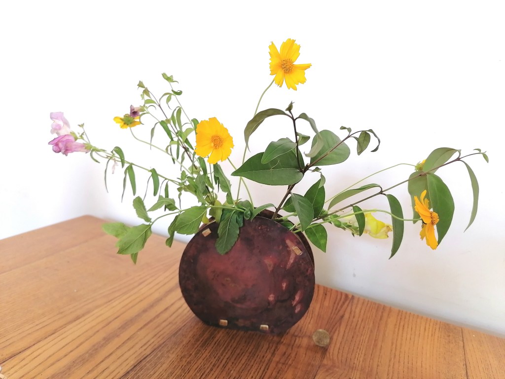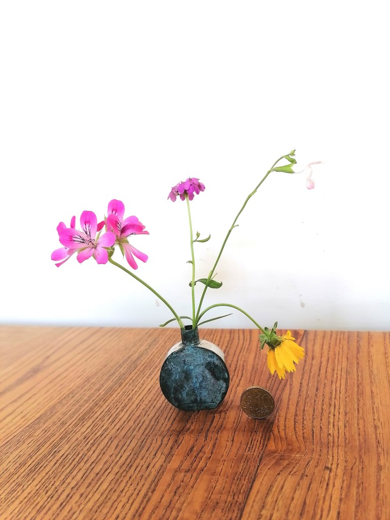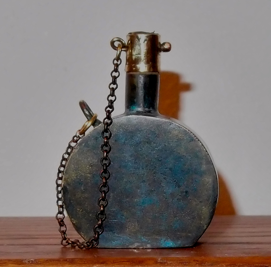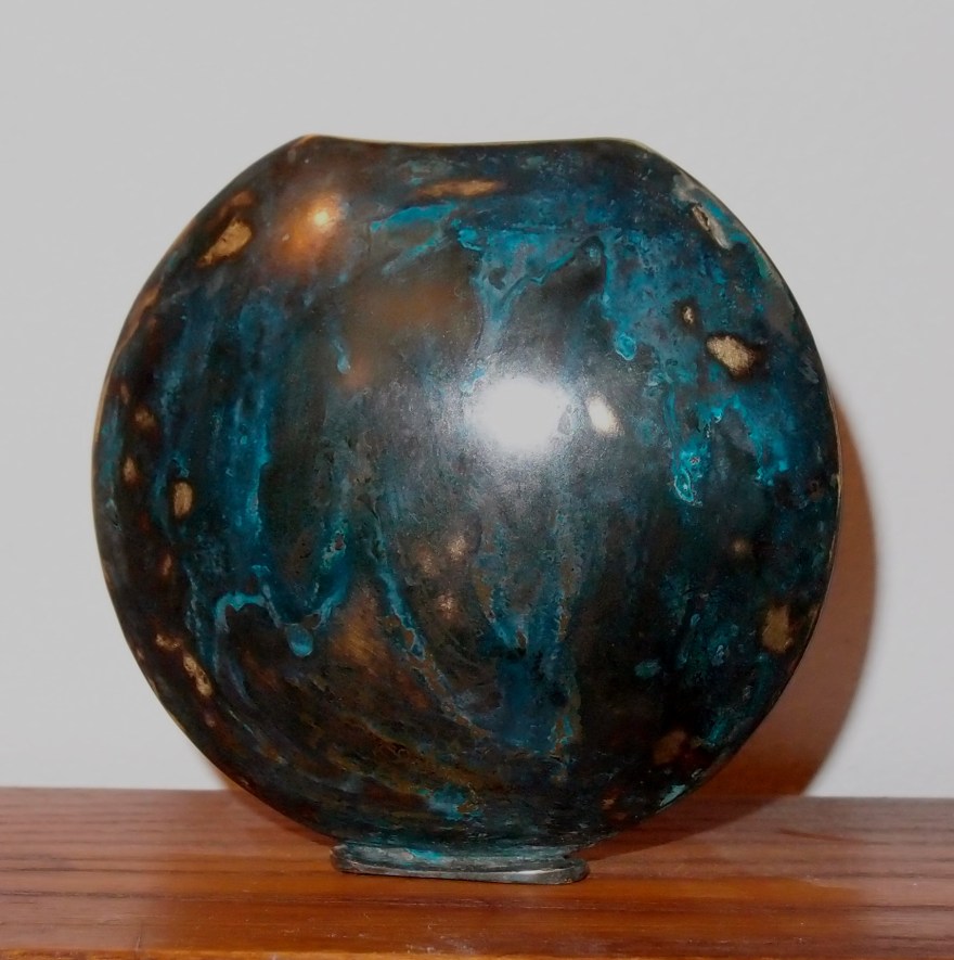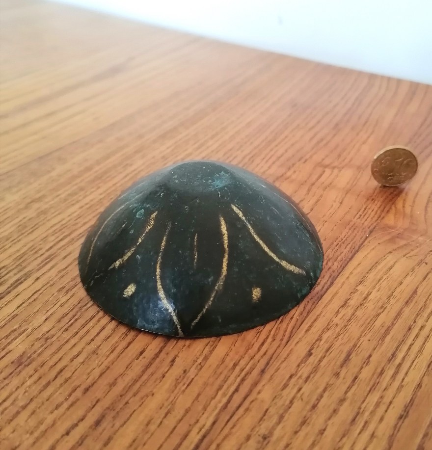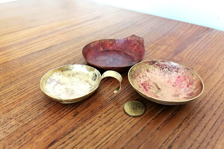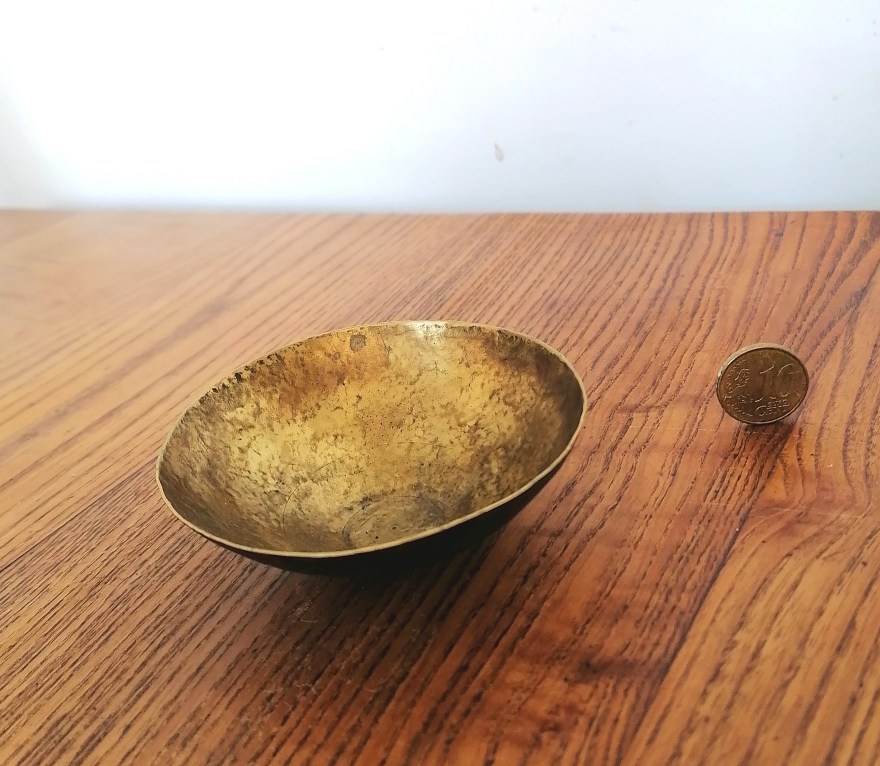 diamètre 8 cm, laiton patiné et maillechort, 60 Euros