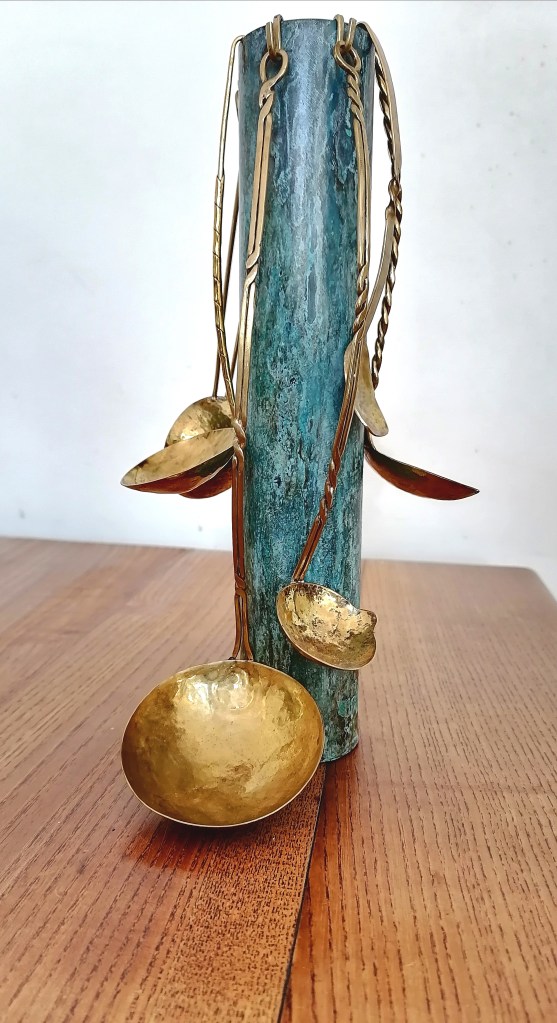 Portoir ~ 25 cm de haut – Cuillères 20 Euros, louchettes 35 Euros, l’ensemble 180 Euros